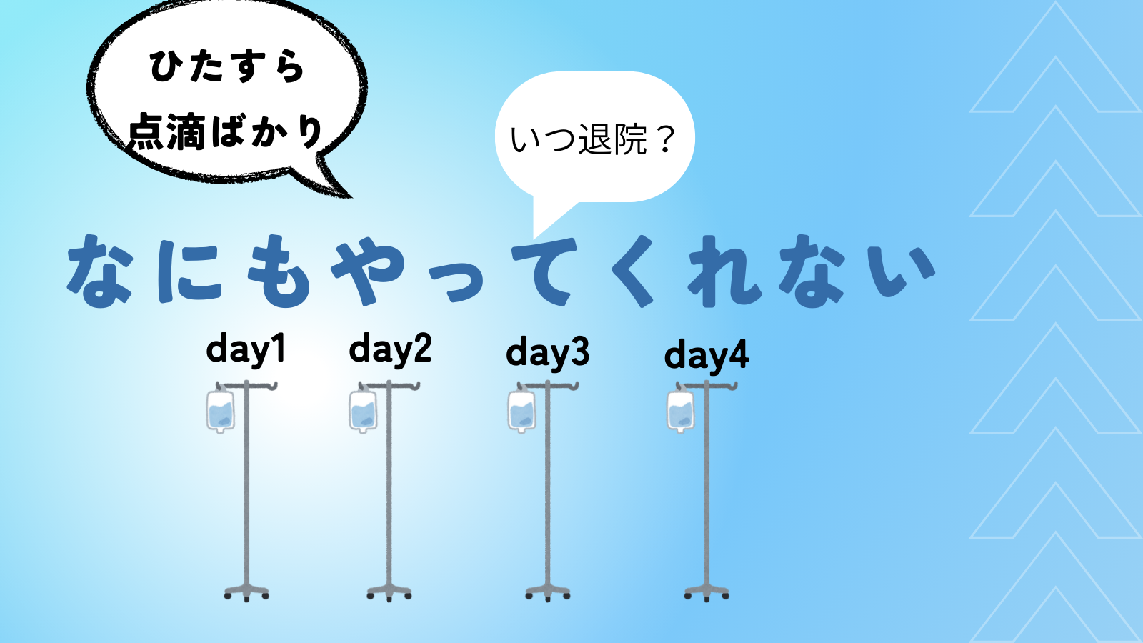いつなったら退院ですか。点滴しているだけで治療は進んでいるんですか。
