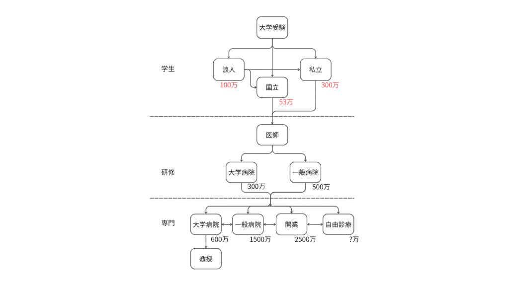 それを知っていただき、本当に医師が給料が高いのかを考えます。